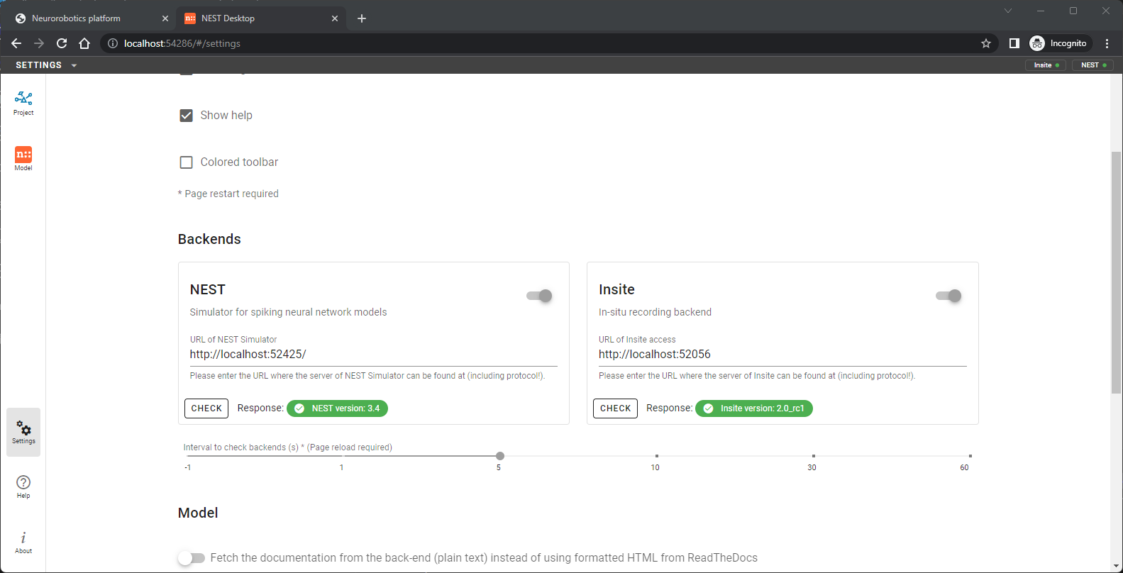 The integration of NRP with NEST Desktop is currently supported only through a specialized local Docker installation.